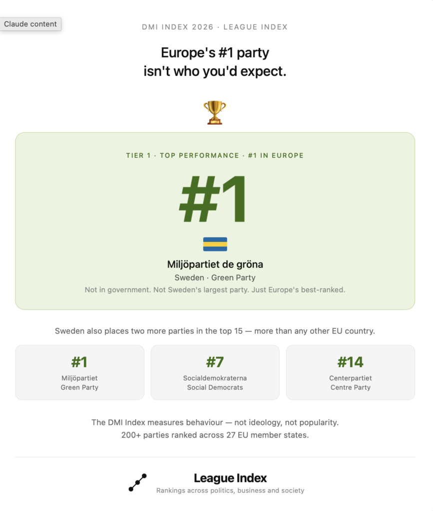 European Political Parties Ranking (DMI Index): A pan-European ranking of political parties based on their Democracy and Media Integrity (DMI) score.